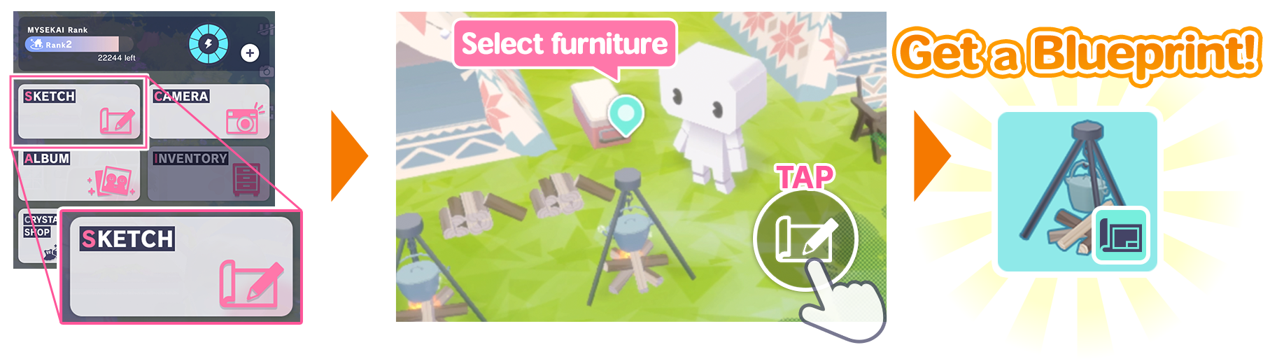 Use a Blank Blueprint to Sketch furniture in someone’s SEKAI to get its Blueprint!