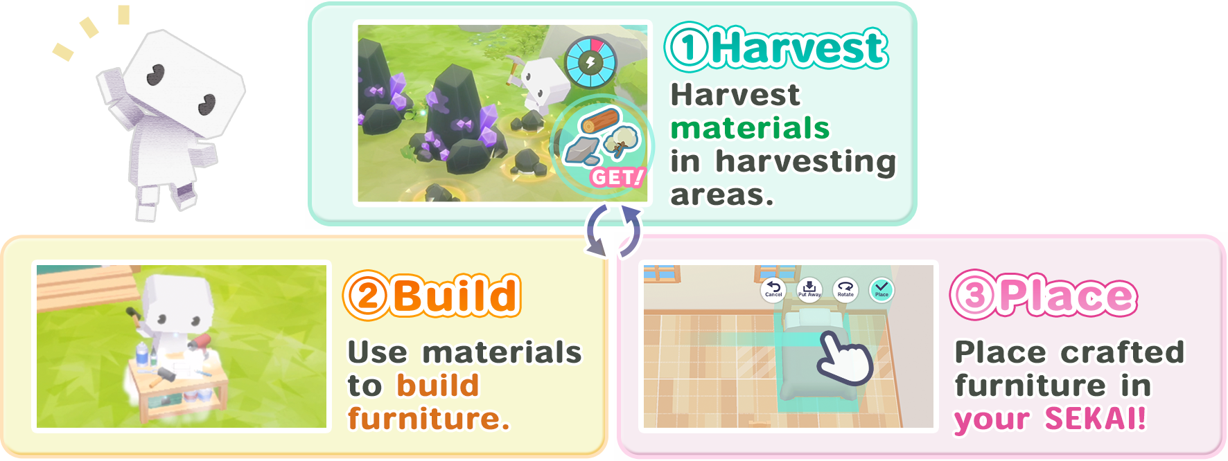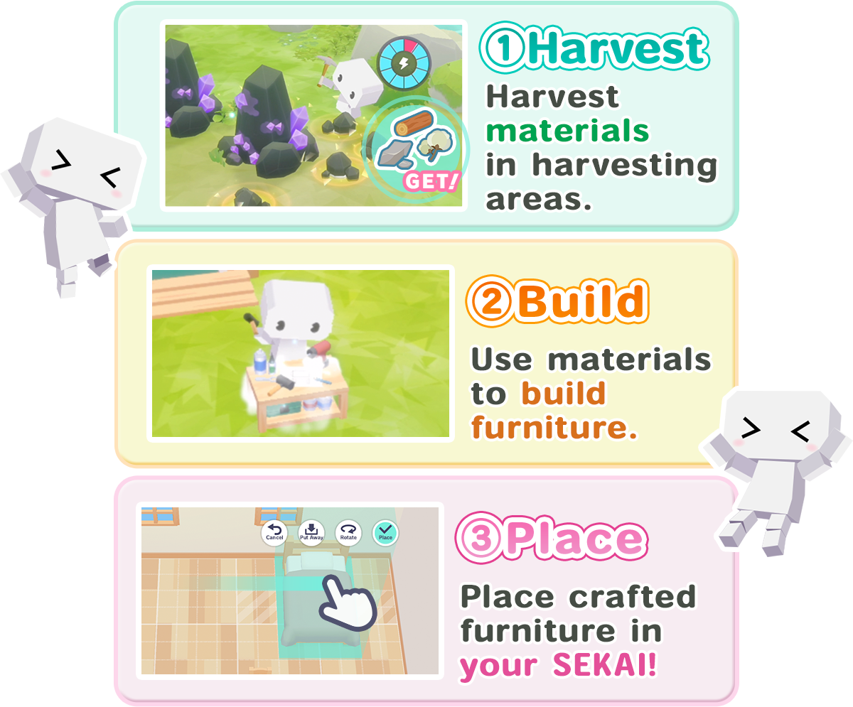 Harvest, build, and place items to decorate your SEKAI!