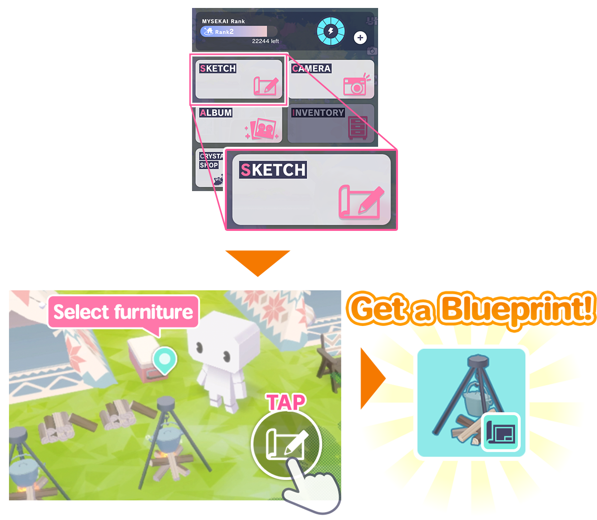Use a Blank Blueprint to Sketch furniture in someone’s SEKAI to get its Blueprint!